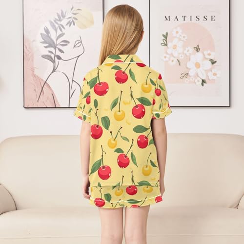 senya Yellow Red Berry Satin Summer Pajama Sets Silk Short Sleeve Button Down Sleepwear 2