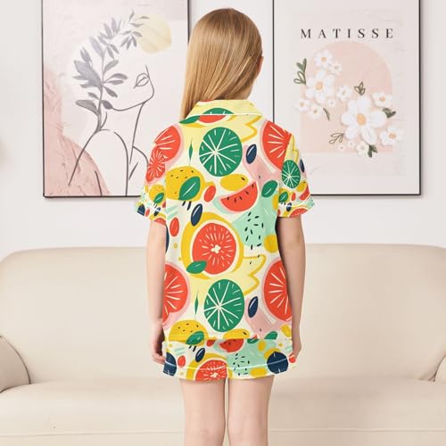senya Cartoon Fruit Watermelon Satin Summer Pajama Sets Silk Short Sleeve Button Down Sleepwear 1