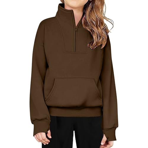 HOT ! Girls Boys Fleece Sweatshirt Turtleneck Half Zip with Thumb Hole Athletic Pullover Tops Teen Girls Solid Color Trendy Clothes