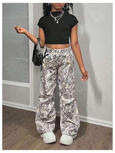 SOLY HUX Girl's Camo Cargo Pants Y2k Elastic Waist Wide Leg Baggy Parachute Pants Streetwear Trousers 1