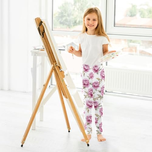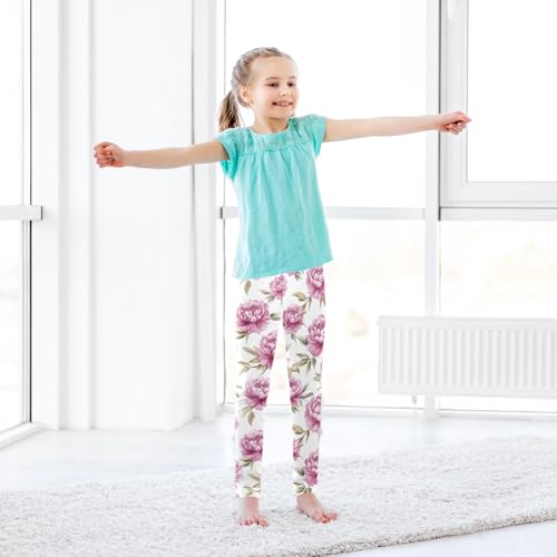Watercolor Pink Peony Flower Girls Leggings Ultra Soft Compression Yoga Gym Pants for Kids 4-10T 5