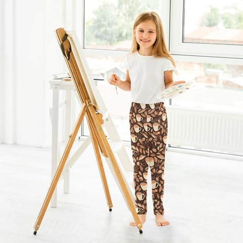 Brown Coffee Leaves Girls Leggings Ultra Soft Compression Yoga Gym Pants for Kids 4-10T 7