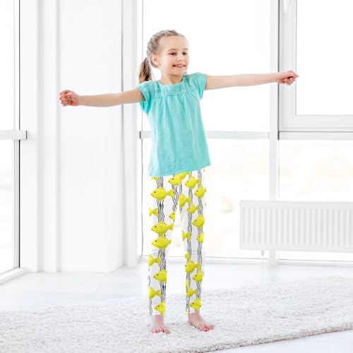 Yellow Fish Stripe Girls Leggings Ultra Soft Compression Yoga Gym Pants for Kids 4-10T 6