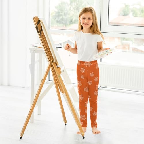 Line Maple Leaf Pattern Girls Leggings Soft Stretch Workout Yoga Dance Pants for Kids Casual Tights 6
