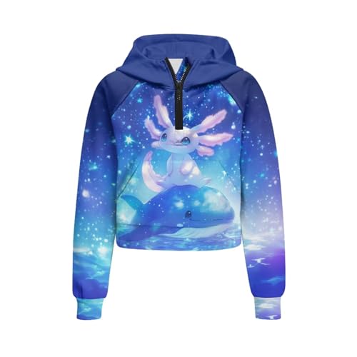 WELLFLYHOM Girls Cropped Sweatshirt 5-14T 1/2 Zip Up Collar Hoodies Long Sleeve Sweater Top 5