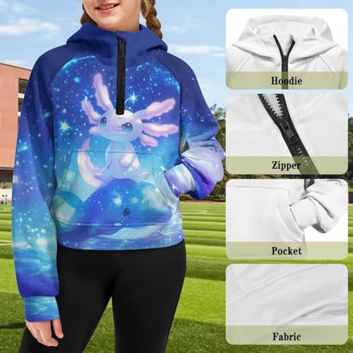 WELLFLYHOM Girls Cropped Sweatshirt 5-14T 1/2 Zip Up Collar Hoodies Long Sleeve Sweater Top 3