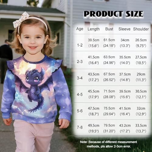 Xpyiqun Girls Crewneck Pullover Tops Ruffle Sweatshirts for Kids 1-8 Long Sleeve T-Shirts Graphic Sweaters 2