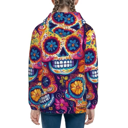 Sugar Skull Day of The Dead Flowers Hoodie Youth Hooded Sweatshirt 3D Digital Printed With Pockets Tops 6
