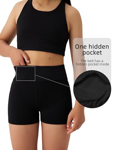 Girls Athletic Biker Shorts with Hidden Pocket High Waisted Dance Kids Shorts Soft Active Yoga Bike Short Teen 4
