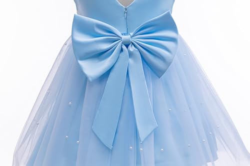 • Material: Polyester, satin, and tulle. Soft, breathable fabric for all-day comfort. Design details include flutter sleeves, a round neckline, knee-length silhouette, and a V-open back with a hidden zipper. The detachable bow and multi-layered tulle skirt create a whimsical fairy-tale princess look. Birthday dresses for girls, little girl dresses for graduation, girls party dress, girls bridesmaid dress, toddler party dress, little girl prom dresses, girls birthday party dresses