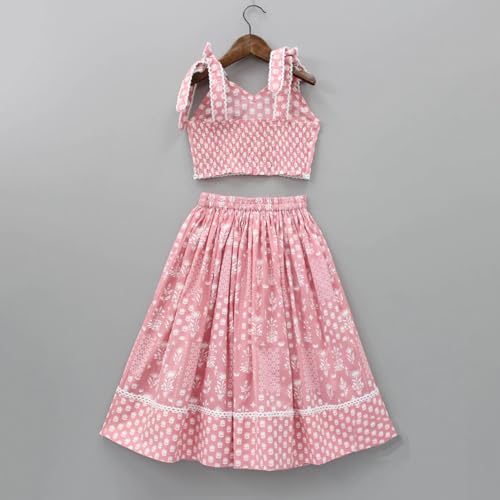 • Adjustable Crop Top: Designed with a stylish smocked back and tie-up shoulders, enhanced by delicate lace trim on the edges.