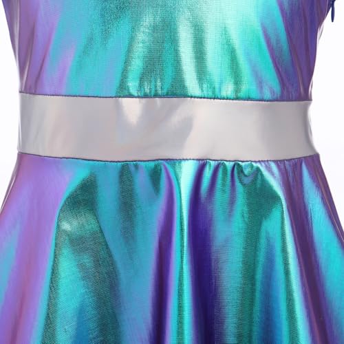IBAKOM Girl Shiny Metallic Dress Toddler Holographic 80s Sparkly Outfits Kids Alien Halloween 90s Prom Swing Skater Dress 5