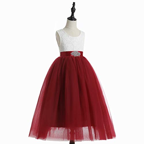 More information about Glamulice Sleeveless Flower Girl Dress A-Line Straight Tutu Tulle Backless Princess Puffy Lace Dresses Fancy Party Gown
