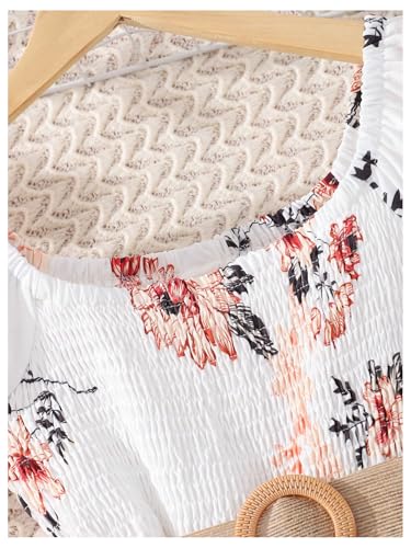 HOT ! Floerns Girl's Puff Sleeve Floral Dress Square Neck Shirred A Line Dresses with Belt