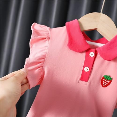 Girl's 2025 Summer Dresses Cotton Cute Strawberry Print Mini Dress Toddler Flutter Sleeve Doll Neck Preppy Dress 2-7y 3