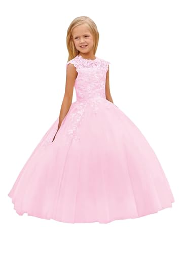 POMUYOO Lace Flower Girls Dresses for Wedding Long Princess Pageant Dresses Kids Prom Puffy Tulle Ball Gown YG231 4