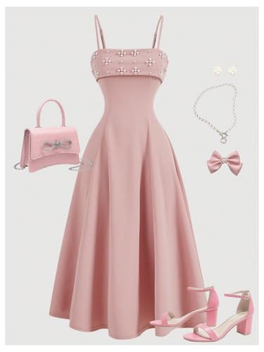 Floerns Girl's Pearl Beaded Spaghetti Strap Flowy Fit and Flare Princess Cami Dress 1