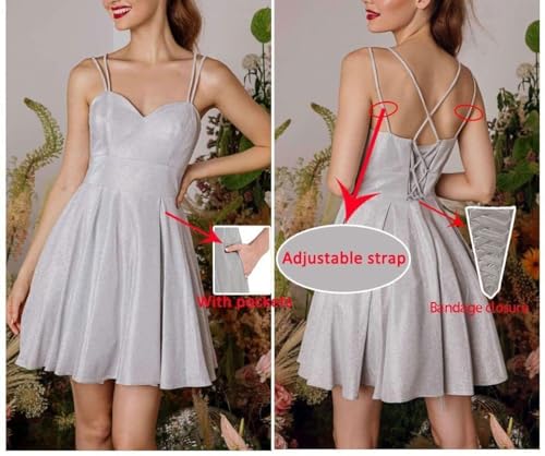 Sparkly Satin Homecoming Dresses for Teens Short Spaghetti Strap Ball Dress Glitter Cocktail Dress with Pockets PH20 5