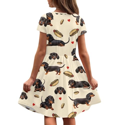 Kids Short Sleeve Dress 2-14Y Girls Crew Neck Midi Dresses Casual Swing Dress with Pockets 4