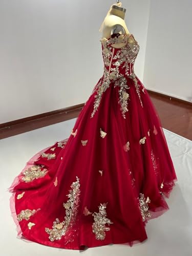 More information about Youjiayi Off Shoulder Quinceanera Dresses Puffy Tulle Ball Gowns for Women Gold Appliques Sweet 16 Dresses
