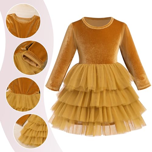 • Fall Winter Long Sleeve Tulle Dress: Girls velvet tutu dress long sleeve princess Christmas birthday party wedding dresses clothes. Long sleeve round neck velvet top bodice, tiered tulle tutu skirt, makes girl extremely graceful and glamorous among the people. Classic long sleeve and round neck, suitable to wear in fall or winter. Birthday gifts for girls, graduation christening dresses for girls, girls princess birthday party dresses kids prom puffy ball gown. Girls' special occasion dresses.