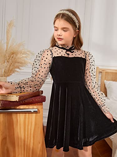 WDIRARA Girl's Heart Print Mesh Flounce Long Sleeve Bow Front A Line High Waist Party Dress 5