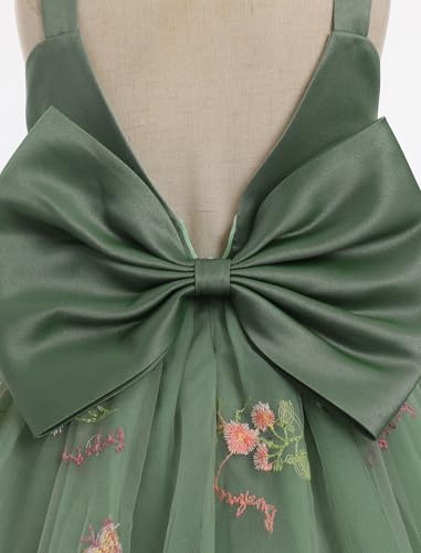 IBTOM CASTLE Toddler Baby Flower Girl Dress Floral Embroidery Pleated Tulle Bowknot Birthday Party Pageant Tutu Dress 4