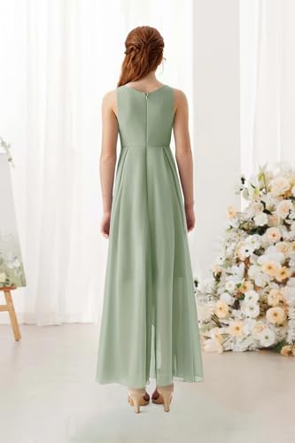 Asymmetrical Junior Bridesmaid Dresses Pleated Chiffon Flower Girl Dress Scoop Neck Formal Wedding Birthday Party Gown 6