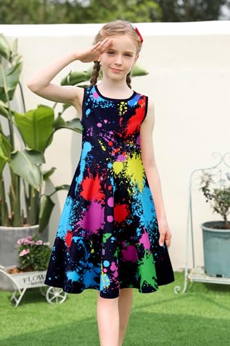 uideazone Girls Sleeveless Dress Round Neck Floral Printed Sundress for Casual Home Party Beach 4-12 Years 5