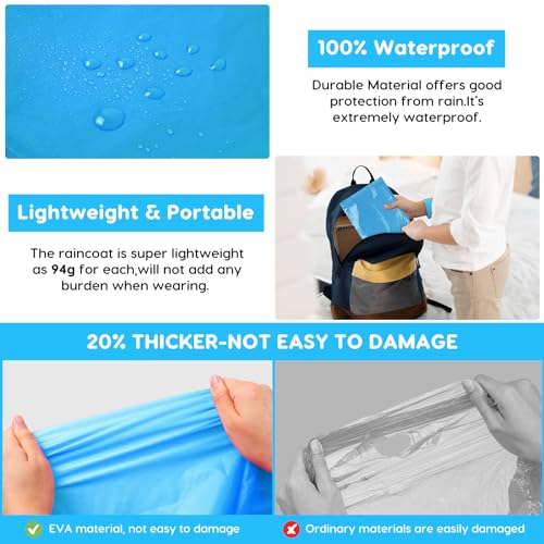 • Eco-friendly and Reusable: The travel raincoat is made of new eco-friendly EVA material, non-toxic, odorless, durable, tear-resistant, harmless, extremely 100% waterproof and reusable.The arm holes and bottom are loose enough for easy on and off. Helps you stay dry from those annoying pop-up showers
