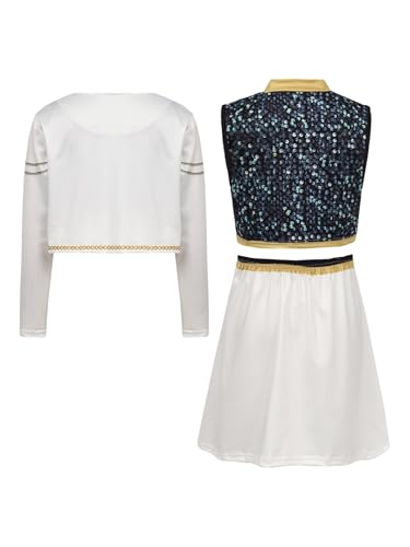 Sxiwei Kids Girls 3Pcs Long Sleeve Outerwear and Vest with Bottoms Concert Popular Singer Fashion Print Outfits Type C 7-8 Years 3
