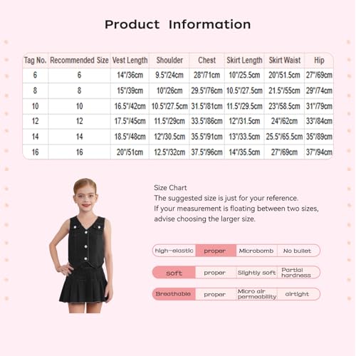 More information about Aislor Kids Girls Asymmetrical Hem Denim Vest Button Down Crop Tops Jeans Waistcoat Gilets with Pleated Denim Skirt Set