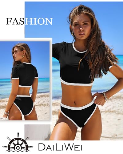 HOT ! DaiLiWei Two Piece Tummy Control Swimsuits for Women Cheeky Bikini Sets Modest Bathing Suit High Neck Swim Suits Teens