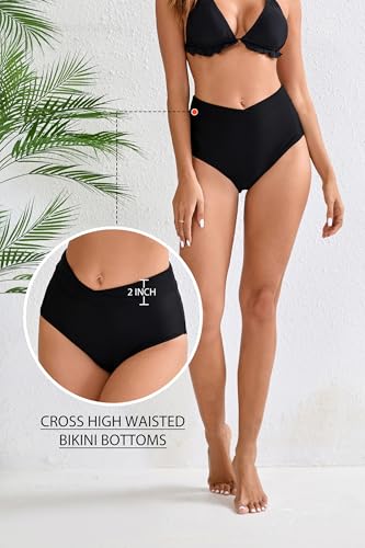 Halcurt Women's Cross High Waisted Bikini Bottoms Full Coverage Swimsuit Bottoms 1