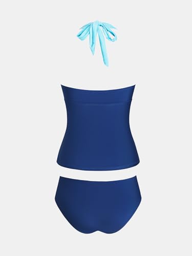 • Design: Embrace beach elegance with this tankini set, featuring a halter tie neckline and colorblock detailing at the neckline and underbust for eye-catching look. Ruched detail offers flattering tummy control, combining style and confidence in one sleek silhouette.