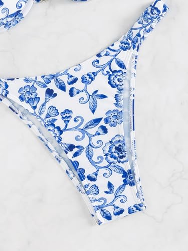 SHENHE Women's Underwire Bikini Sets 2 Piece Floral Push Up Bikini and High Cut Thong Cheeky Brazilian Swimsuit 2