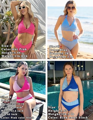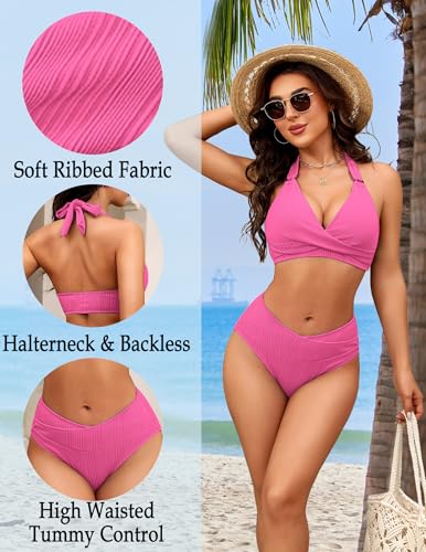 More information about AI'MAGE Womens High Waisted Bikini Sets Tummy Control Two Piece Swimsuit 2025 Ribbed Color Block Halter Bathing Suits