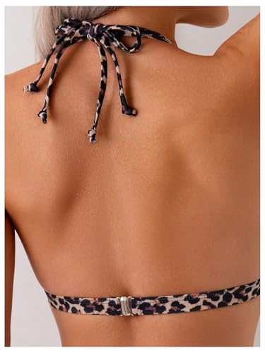 SweatyRocks Women's Leopard Print Halter Triangle Bikini Set High Cut 2 Piece Swimsuit 4