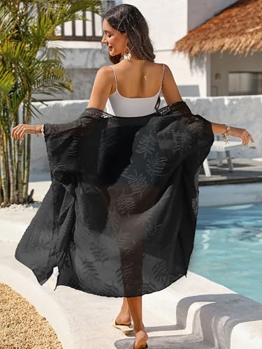 BB&KK 2025 Summer Women Cover Ups Swimwear Open Front Lace Kimono Cardigan Swimsuit Sheer Coverup Midi Kimono 4