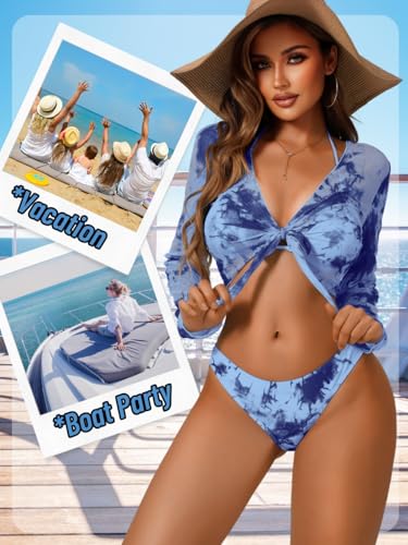 HOT ! Sexy Bikini with Cover Up,Tie Dye Cheeky Swimsuits for Women,3 Piece Bathing Suit Beach Vacation