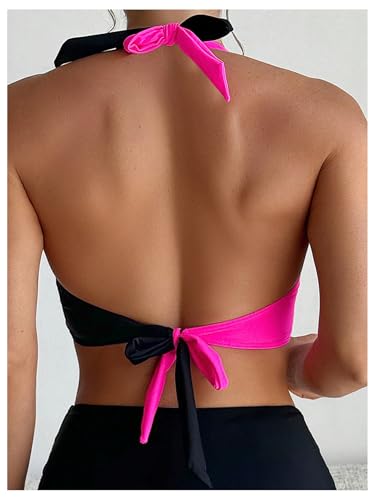 • Feature: Bikini tops for women, twist front, two tone, sleeveless, halter neck, creating a trendy and eye-catching look