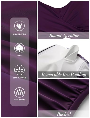 • Tummy control two-piece swimsuits: The ruched design gives you more coverage and a slimming silhouette. High-cut swim bottom makes your legs look longer and shows your figure perfectly