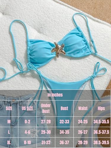 Women Two Piece Starfish Bikini Set, High Cut String Tie Side Swimsuit, Cute Teens Low Rise Cheeky Bathing Suit Beach 4
