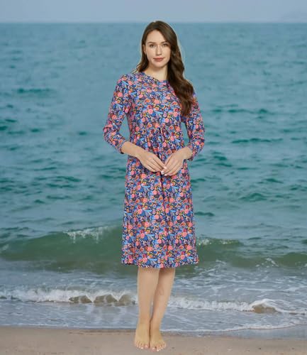 alvon Women Modest Swim Dress Knee Length Swimsuits Cover Ups UPF 50+ Sun Protection Long Sleeve Drawstring 107 l 1