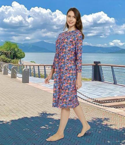 HOT ! alvon Women Modest Swim Dress Knee Length Swimsuits Cover Ups UPF 50+ Sun Protection Long Sleeve Drawstring 107 l