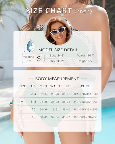 • Good Support Swimsuits for Women--Bandeau bikini top with detachable thin strap, choose cute or sexy strapless bikini style. Push up bikini top with removable padding, bandeau swimsuits for women allow you to flaunt curves on the beach