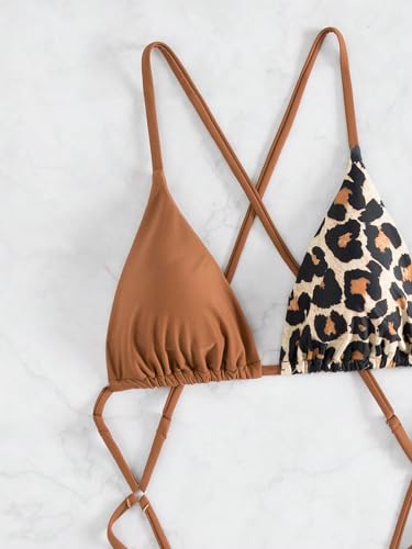 OYOANGLE Women's Leopard Print One Piece Swimsuit Criss Cross Cut Out Triangle Bathing Suits 6
