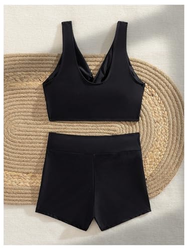 SweatyRocks Women's 2 Piece Swimsuit Ruched Twist Ruched Bikini Set Drawstring Shorts Bathing Suit 2