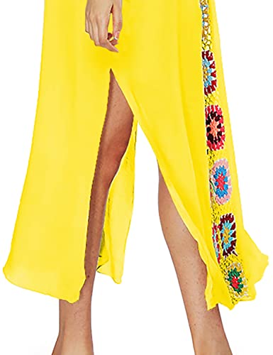 HOT ! Bsubseach Women Mexican Embroidered Kaftan Dresses Deep V Neck Short Sleeve Beach Side Split Cover Up for Women Caftan Dress