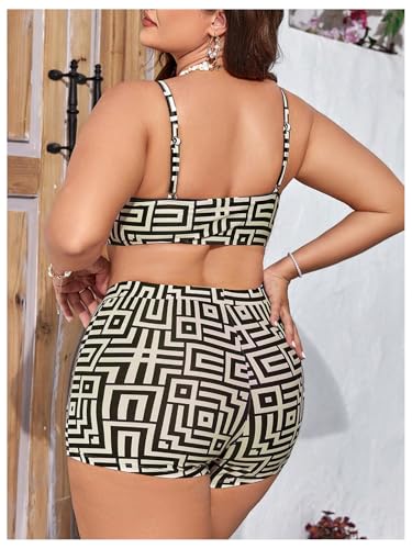 SweatyRocks Women's Plus Size Bathing Suit 3 Piece Geometric Boyshorts Swimsuit with Kimono Cover Up Bikini Set 3